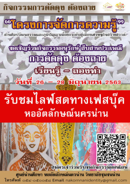 สถานที่ : ศูนย์น่านศึกษา หออัตลักษณ์นครน่าน วิทยาลัยชุมชนน่าน รับชมกิจกรรมผ่านช่องทาง Facebook LIVE “หออัตลักษณ์นครน่าน”